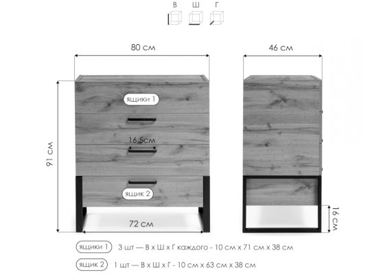 | Число ящиков | 4 |