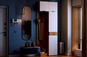 Принт, имитирующий вертикальную фрезеровку придает вешалке уникальный и современный вид, добавляя текстуру и глубину. Материал вешалки – ЛДСП, что обеспечивает прочность и долговечность, а также легкость в уходе.
