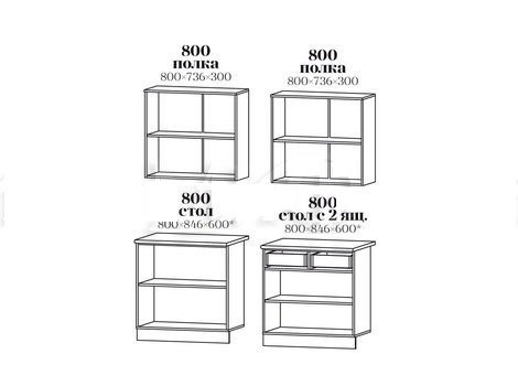 Высота верхних шкафов: 736 мм
