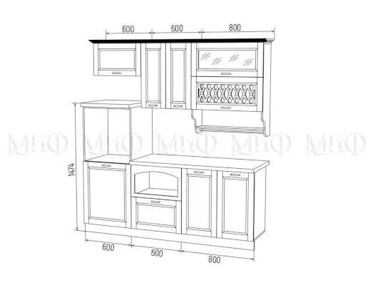 Кухонный гарнитур Милано 2,0 м Компоновка 3 (Миф)